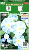 1つの花径に3~5花を付ける西洋系の朝顔です。 葉は丸く、白地に青いストライプの花は、 短日開花性により暖かい地域では8月以降から霜のころまで咲き続けます。 とても生育がよく主に垣根や日よけに適します。 ※白、青の単色花も咲くことがあります。